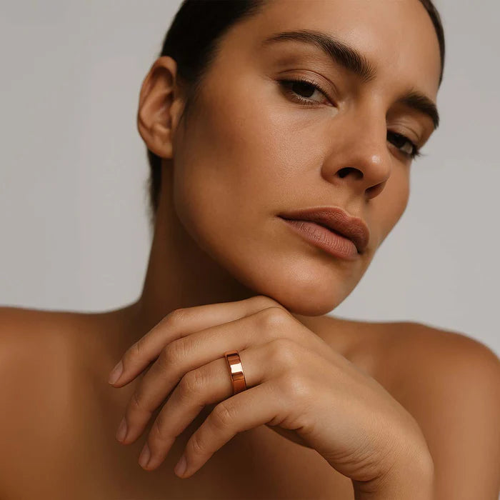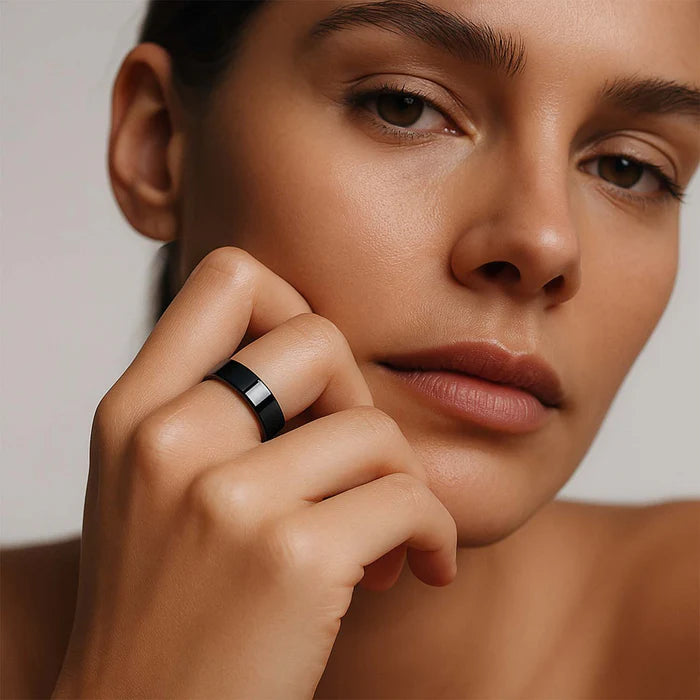 Pierścień został zaprojektowany z 4 magnesami umieszczonymi w określonych punktach wewnątrz obrączki. Gdy nosisz pierścień, magnesy te oddziałują z naturalnym polem magnetycznym Twojego ciała, tworząc siłę magnetyczną, która wspiera Twoje zdrowie na wiele sposobów.