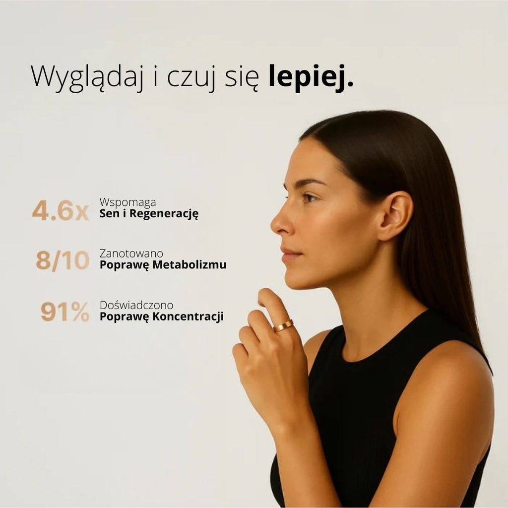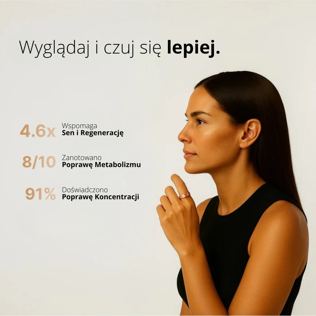 użytkowników zgłosiło szybsze zasypianie i lepsze samopoczucie po przebudzeniu, nosząc pierścień w nocy.